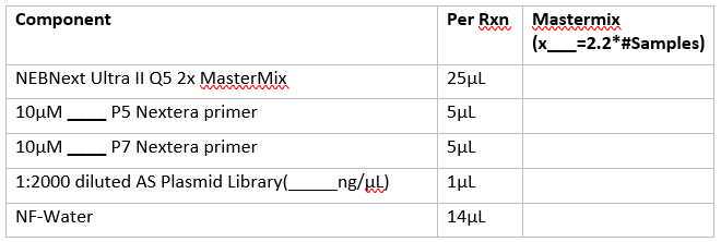 *Note: at this step, you will generate the vector required for the gibson cloning reaction. This linearized vector contains the homology arms for gibson. In the NAR paper we used an oligo to add the N504 barcode to the plasmid, this is not required for most purposes. For this reason, I’ve denoted the reverse primer as N5XX/universal because you can add whatever index you want OR not add an index at all, just like the forward primer.