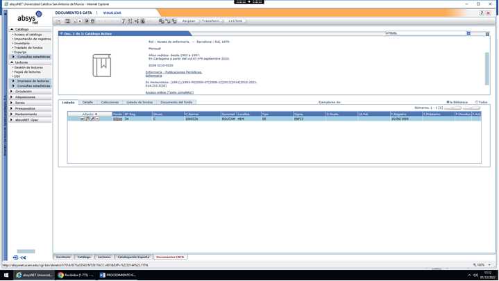 El registro de los ejemplares una revista se realiza también con el Programa de Gestión Bibliotecaria “Absysnet”.