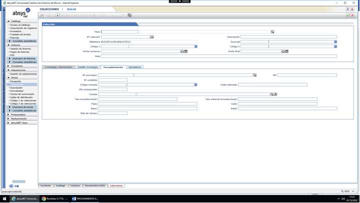 La catalogación de las Publicaciones Seriadas se realiza con el Programa de Gestión Bibliotecaria “Absysnet”.