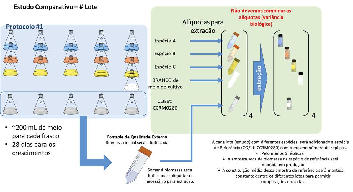 Identifique cada frasco Erlenmeyer com etiquetas contendo código (rastreável na lista de amostras do projeto) e data de produção* As datas de produção de cada espécime, adição de solução de nutrientes e coletas de biomassa devem ser documentadas na lista de amostras do projeto.