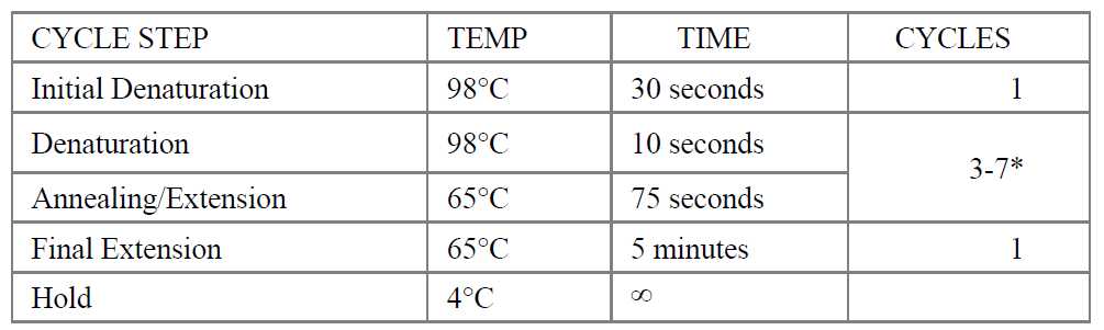 Place the tube on a thermal cycler with the heated lid set to 105°C and perform PCR amplification using the following PCR cycling conditions: