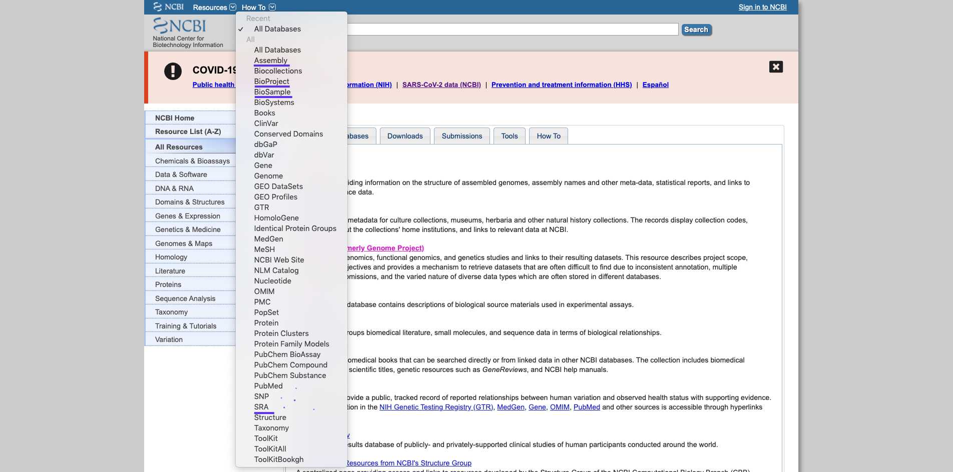 You can access NCBI databases at: https://www.ncbi.nlm.nih.gov/guide/all/