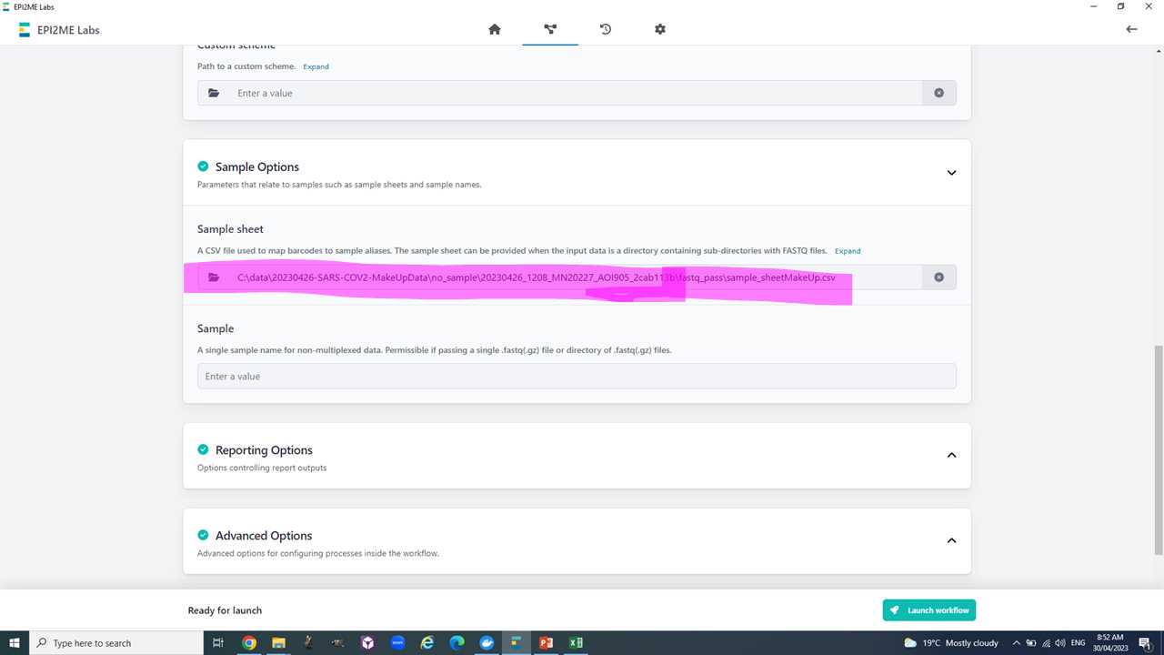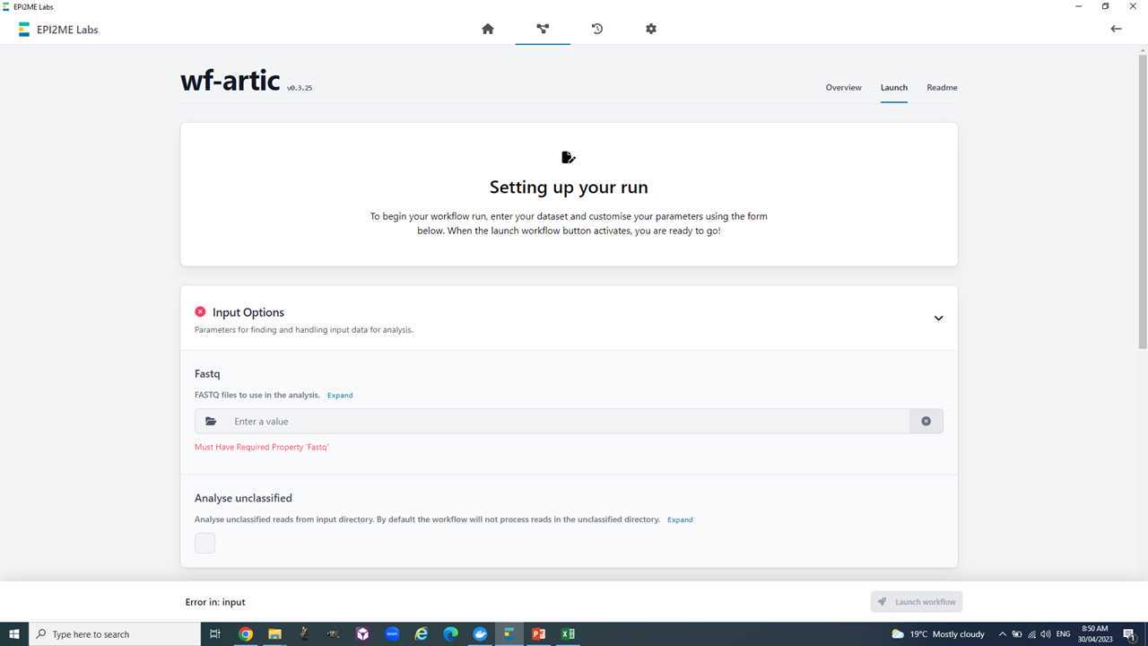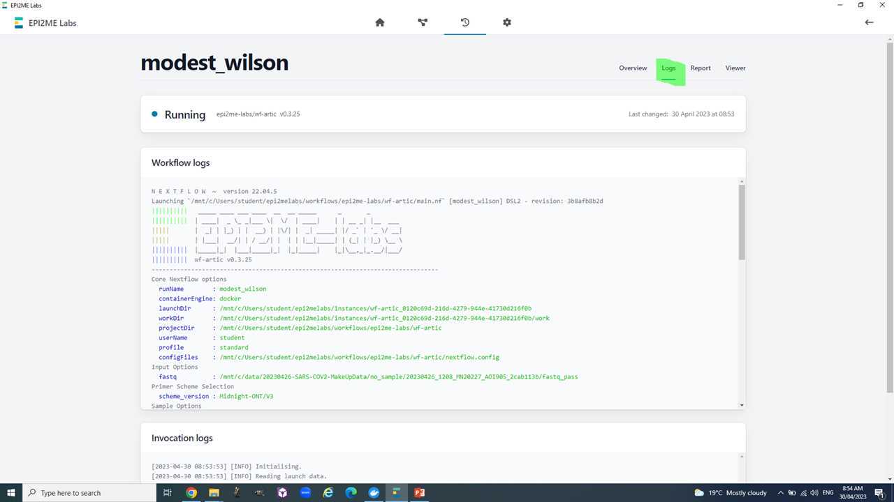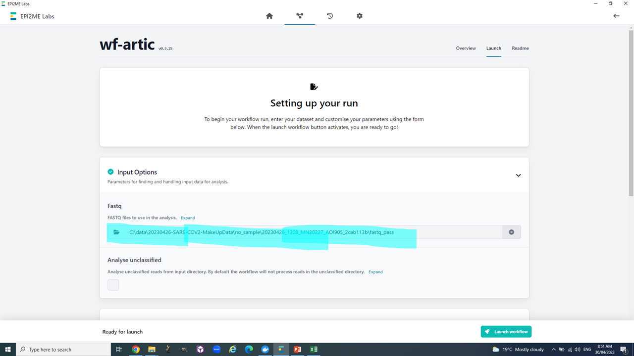 Now we are ready to set-up and run the Epi2Me workflow for artic analysis.
