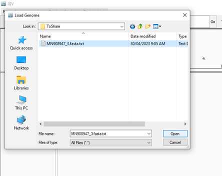 Select "Genomes" > "Load Genomes from File.." and add the "MN908947_3.fasta" reference shared here (ANU only).