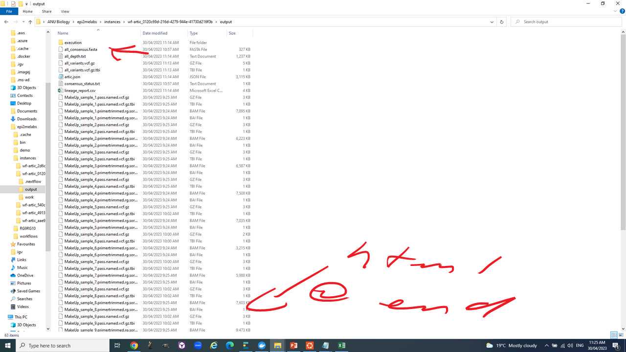 Your basecalled and demutiplexed, by barcode, fastq data should be in the 'fastq_pass' folder be in a similar to this C:\data\20230426-SARS-COV2-MakeUpData\no_sample\20230426_1208_MN20227_AOI905_2cab113b\fastq_pass.