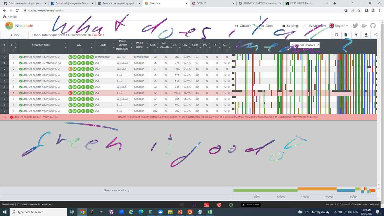 - Evaluation if your and/or the MakeUp samples would make the QC cut-off 90% genome coverage and other metrics that you deem important for QC. Would you 'flag' any of your samples as standing out e.g. being negative control?