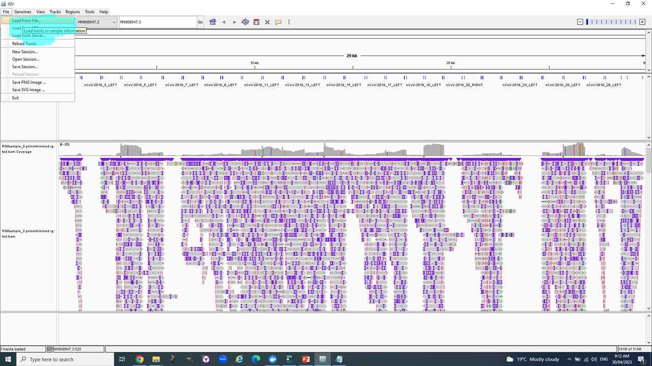 Load one of the "XXX.primertrimmed.rg.sorted.bam" files from the "output" folder of Epi2Me here (ANU only) or from your own dataset.