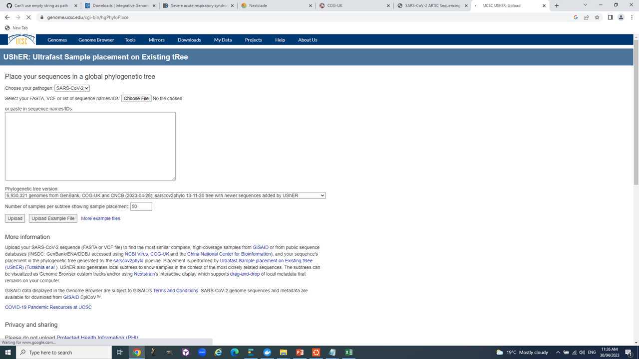 Other websites and resources used in the protocol: https://igv.org/, https://clades.nextstrain.org/, https://pangolin.cog-uk.io/, https://genome.ucsc.edu/cgi-bin/hgPhyloPlace