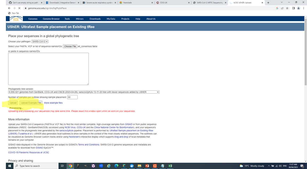 Step V: Use Usher to place your samples into a global context and see its closest public neighbor.