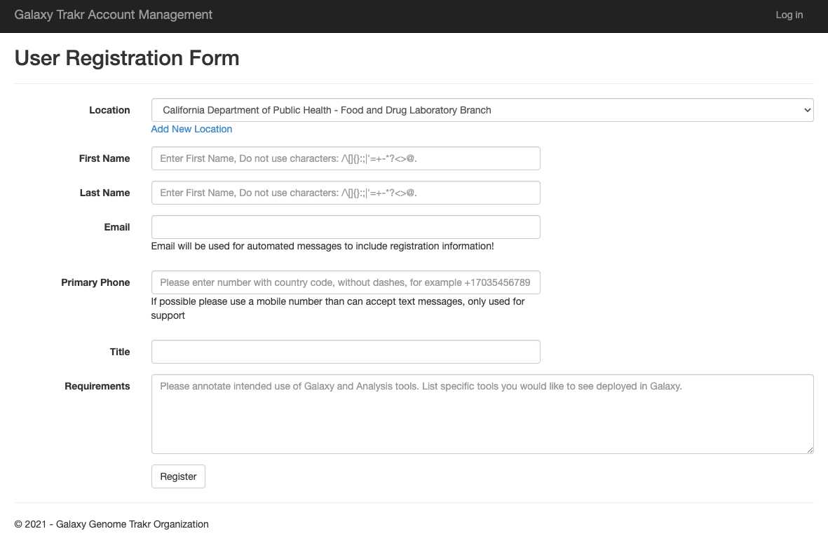 Link to create a new GalaxyTrakr account: https://account.galaxytrakr.org/Account/Register