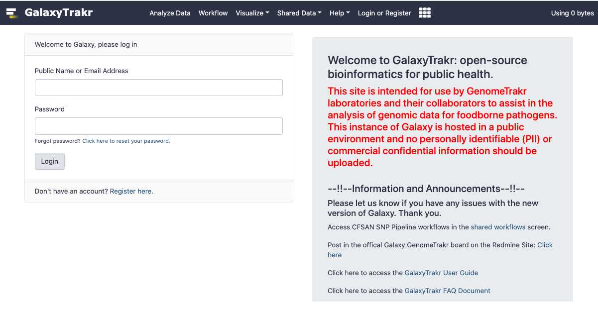 Login to GalaxyTrakr: https://galaxytrakr.org/root/login