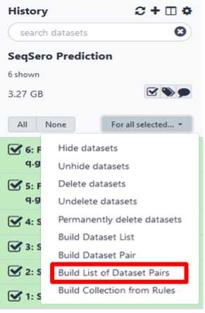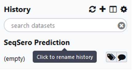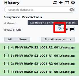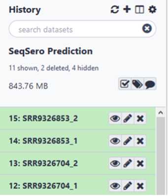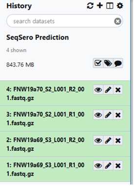 If your data is already in GalaxyTrakr, open the history containing that data to be analyzed or move the data to a new history for analysis and proceed to Step # . This option may be preferred if the data was already uploaded for other purposes such as MicroRunQC. It’s ok if there are non- Salmonella isolates in your dataset.They will not return an antigenic formula or serovar name.
