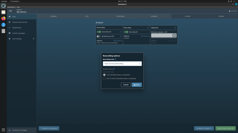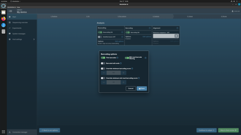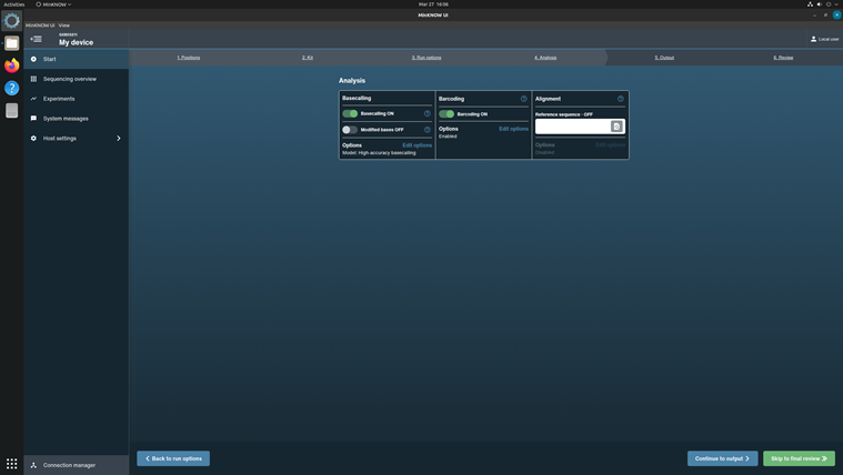 Click Continue to Analysis to choose basecalling and Barcoding parameters.