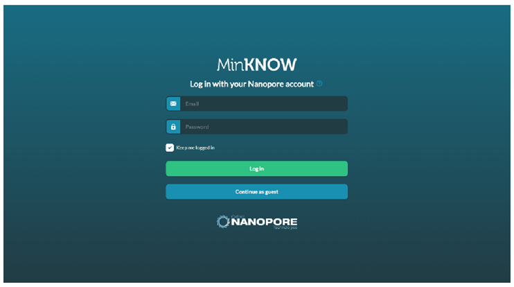 Use Oxford Nanopore Community username and password to login or continue as Guest.