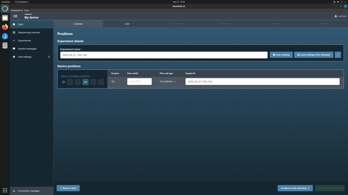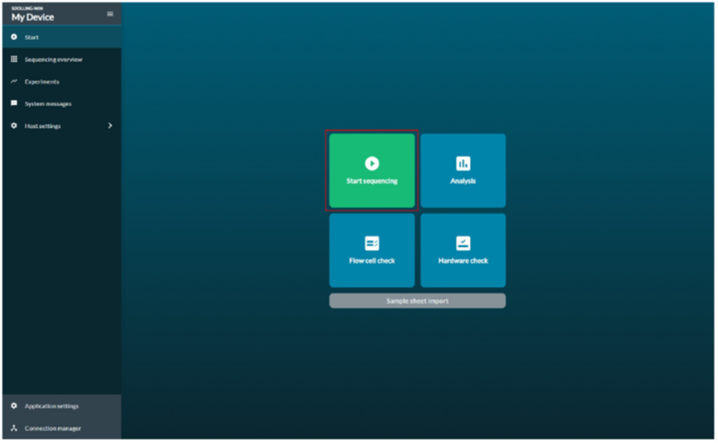 Turn on GridION (or MinION Mk1C) device. Make sure all the connections for the display, mouse, keyboard, and internet are ready.