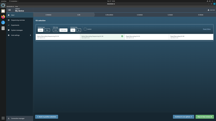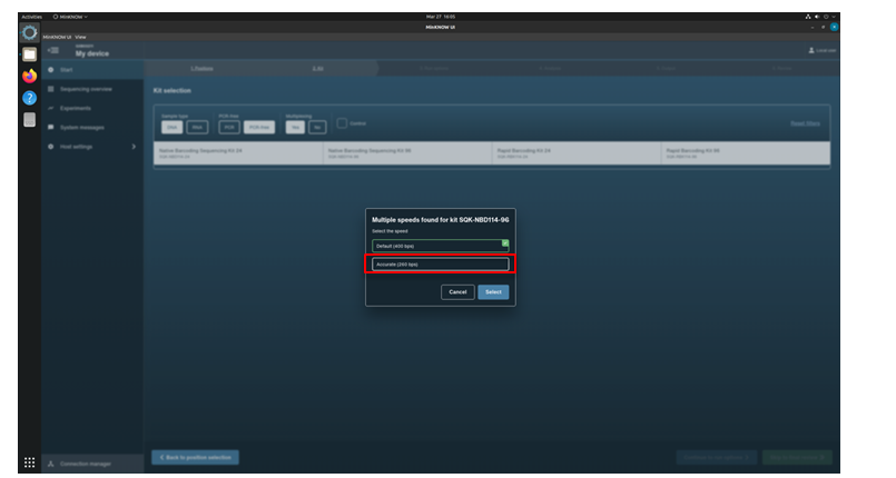 Click the kit SQK-NBD114-96 from the Kit Selection menu.